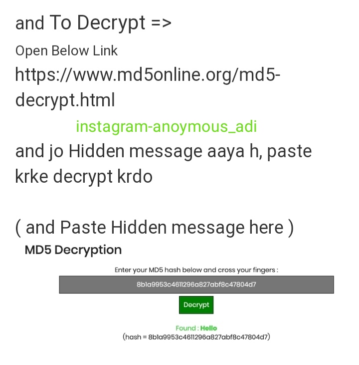 Open the link for Decrypt the code text-"http://www.md5online.org/md5-decrypt.html"